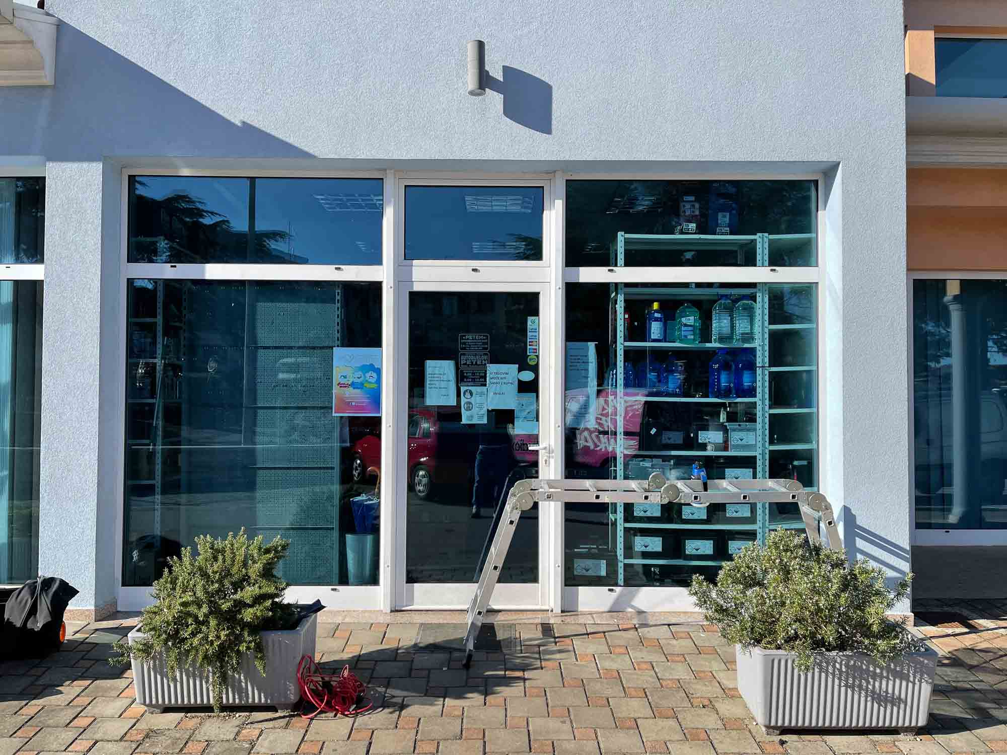 Grafička priprema, tisak i montaža u srcu Istre. Za našeg dragog klijenta plan je bio mondernizirati ga, pa smo tako izradili noviji svijeziji, uocljiviji visual u kojem smo isto tako izradili I novi logo. Staru ispucalu I ostecenu grafiku smo skinuli, stakla pripremili za aplikaciju nove folije. Posto je prostor vecinom na suncu, izbor je pao na najkvalitetniju vise godisnju foliju sa prozirnim lijepilom kako ipak nebi previse zamracili prostor a ujedno isli smo na varijantu izrezivanja elemenata te ne pokrivanjem kompletno staklenih povrsina kako bi se elementi u izlogu mogli vidjeti.